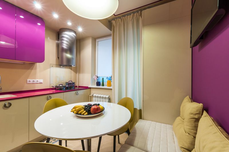 Площади достаточно для размещения просторной рабочей зоны в виде столешницы, варочной поверхности, мойки. На такой кухне помещается и стандартный уголок, уже поднадоевший многим горожанам. Пространство можно использовать ещё рациональней, применив некоторые хитрости: