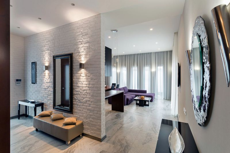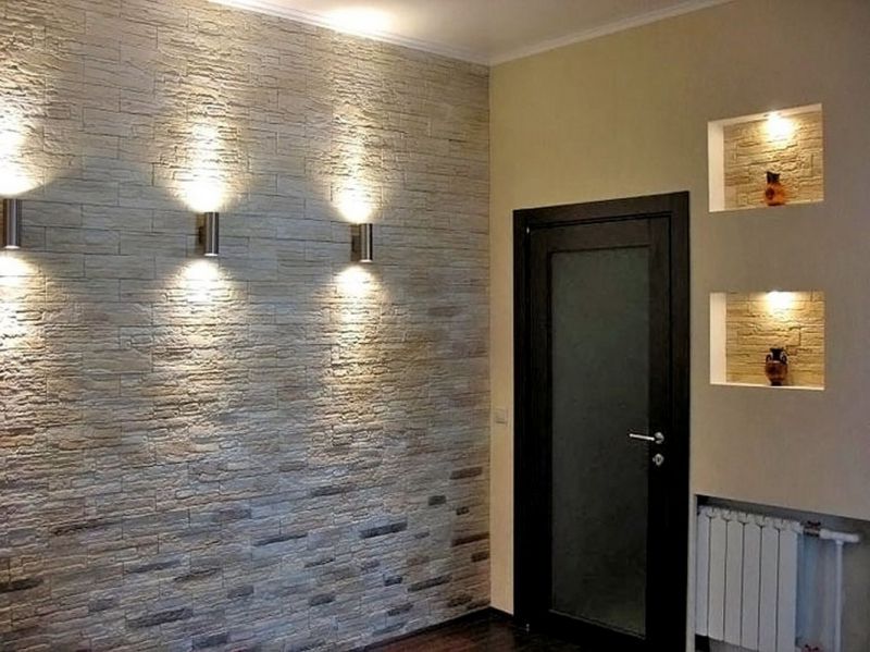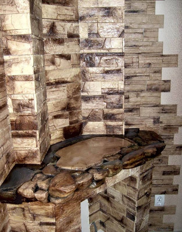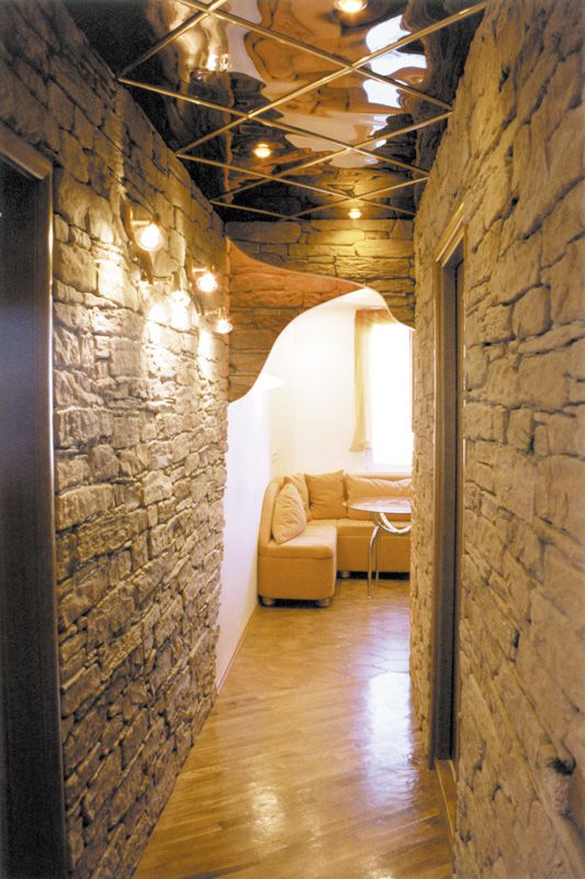 Камень относится к «холодным» отделочным материалам. Но помещение не жилое, поэтому эксперименты уместны. Присматриваясь к фото дизайна и отделки квартиры, учтите особенности оформления камнем: