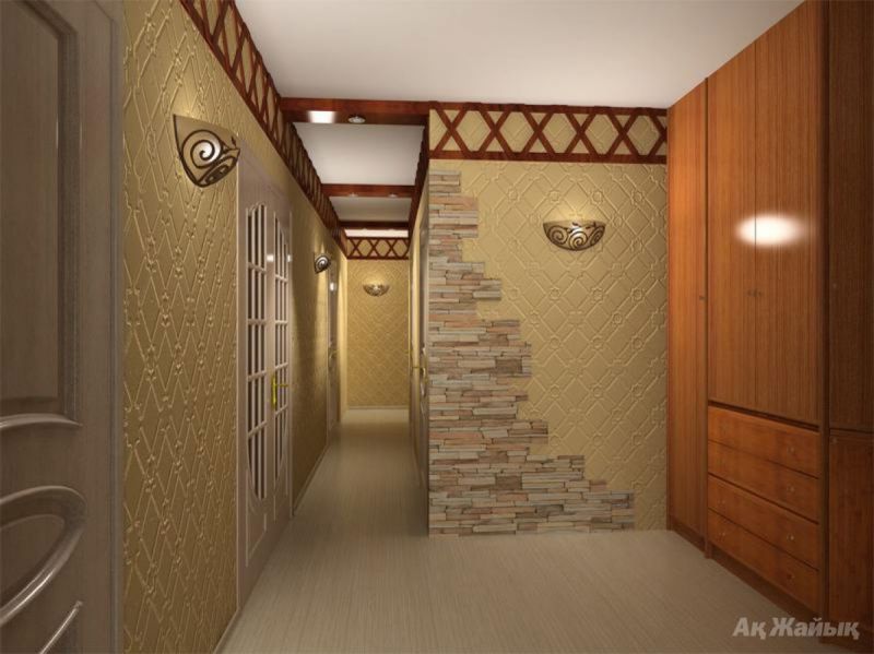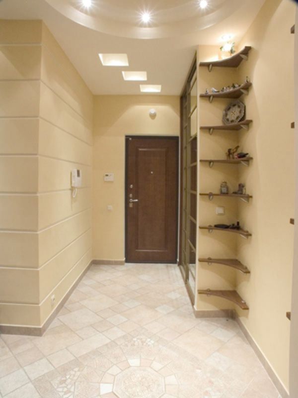4. Освещение. Изза отсутствия источников натурального света, система освещения коридора в идеале должна состоять из 23 светильников. Также очень оригинально будут выглядеть встроенные подсветки потолочной зоны и декоративных ниш.