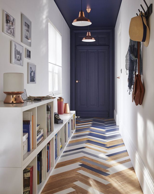 1. Полы. Для визуального расширения узкого прохода рекомендуется класть на пол диагональными рядами кафель с плитками разных размеров. Еще такого же эффекта можно достичь за счет укладки ламината и паркета с диагональным либо поперечным рисунком.