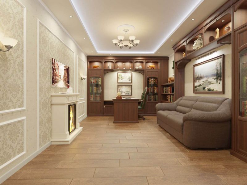 Исключив все возможные дефекты поверхностей после выполненных черновых работ, приступают к финишной отделке всех перегородок. Потолки красятся или оклеиваются обоями. На в кухне, ванной, туалете, возможно, выложить плитку. Потолки также возможно сделать подвесными или натяжными. На полы выстилают ковролин, ламинат, паркет или плитка. Устанавливаются новые розетки, выключатели |