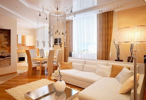- Небольшая квартира требует наиболее компактный и лаконичный интерьер с зонированием пространства.