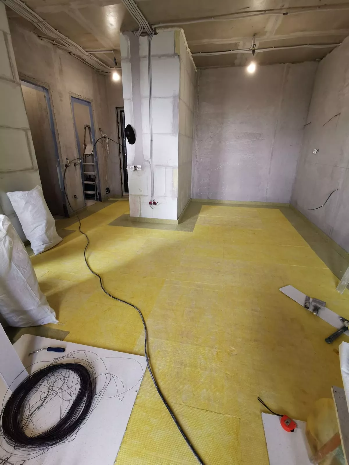 Мы можем сделать плавающий пол. Он обладает высокими звукоизоляционными свойствами и поглощает даже сильные звуки, волну от ударов, при этом, имея низкий индекс звукоизоляции.