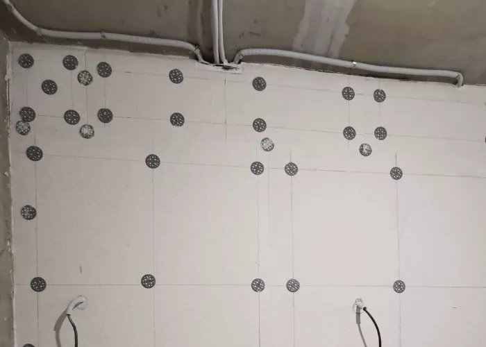Для плит нужна каркасная конструкция на стенах и потолке, чтобы расположить на полу используют лаги, закрепленные на виброопорах. На таких же опорах желательна установка каркаса на перегородках |