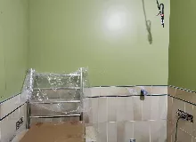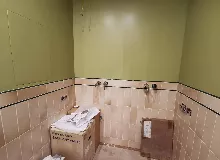 Капитальный ремонт санузла с заменой сантехники, плитки и установкой душевой кабины.